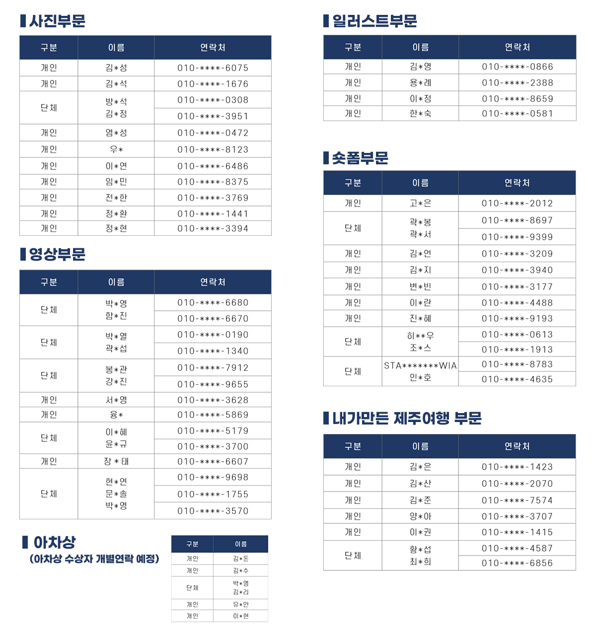 ※ 아차상 수상자의 경우 개별 유선 연락 예정입니다.
